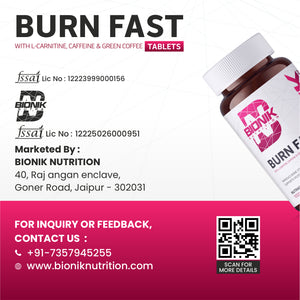 BIONIK Burn Fast Tablets are a scientifically designed nutraceutical supplement formulated to support fat metabolism, energy production, and weight management.